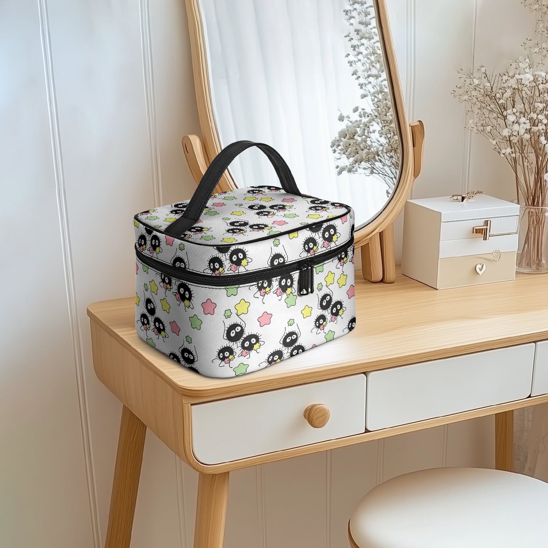 Lightweight and compact, this travel-friendly cosmetic bag features a wide, firm handle for comfortable carrying and a roomy interior to hold all your daily makeup must-haves securely—whether for everyday use, business trips, or vacations. Beyond travel, it doubles as a handy bathroom organizer.